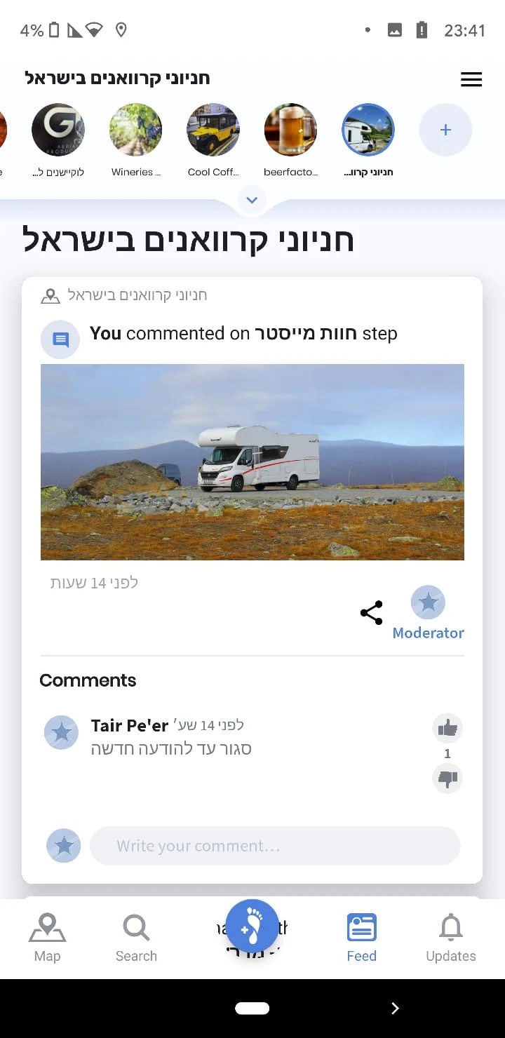 אתם יכולים לצפות במפה בפרישת חניוני הקרוואנים ברחבי הארץ ובמה כל אתר מספק. אתם יכולים להגיב בזמן אמת מהמקום- האם המקום מלא? אילו שירותים מוצעים? מהם המחירים המעודכנים? תוכלו להעלות תמונות מהמקום. כך קהילת מטיילי הקרוואנים בארץ יוכלו לבחור לאילו חניונים להגיע באמצעות המלצות קונקרטיות ממטיילים בזמן אמת. איך מתעדכנים? מורידים את אפליקציית STEPS ומוסיפים למעקב גם את מפת חניוני הקרוואנים בקישור פה. רוצים לדעת גם איפה לטייל ברחבי הארץ? אתם מוזמנים למפת הטיולים והאטרקציות.